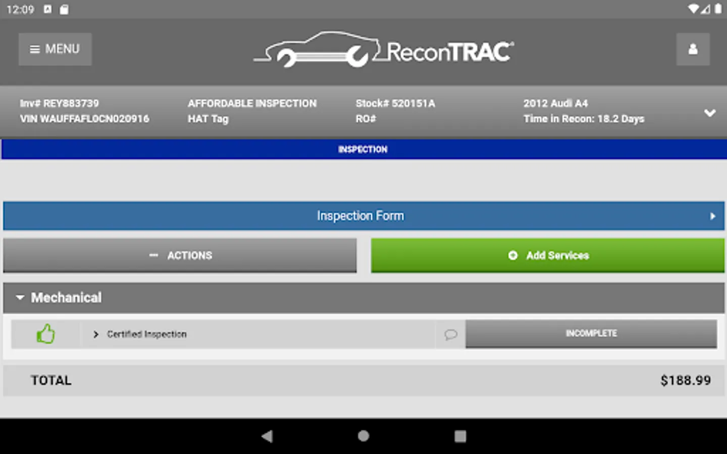 ReconTRAC is a powerful Automotive Reconditioning web based software application that allows automotive dealerships manage their entire reconditioning process,. This latest version (RT.3.2) provides an all new mobile design along with full desktop features, including integrations with CARFAX, vAuto, Safercar.gov, Dealertrack, and CDK. The vin bar code scanner has been upgraded to fix issues with some vin bar codes along with other upgrades to the scanning and stability of the entire app.