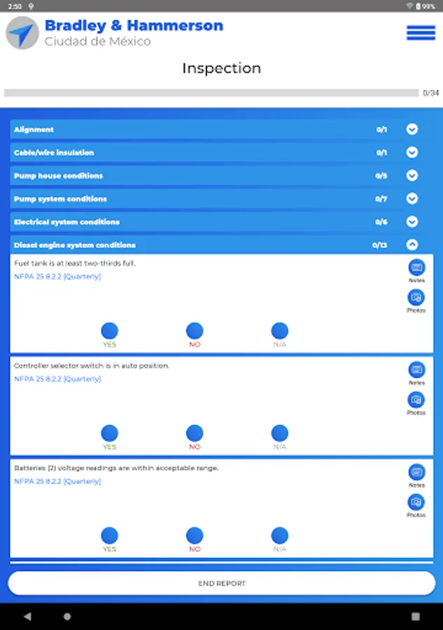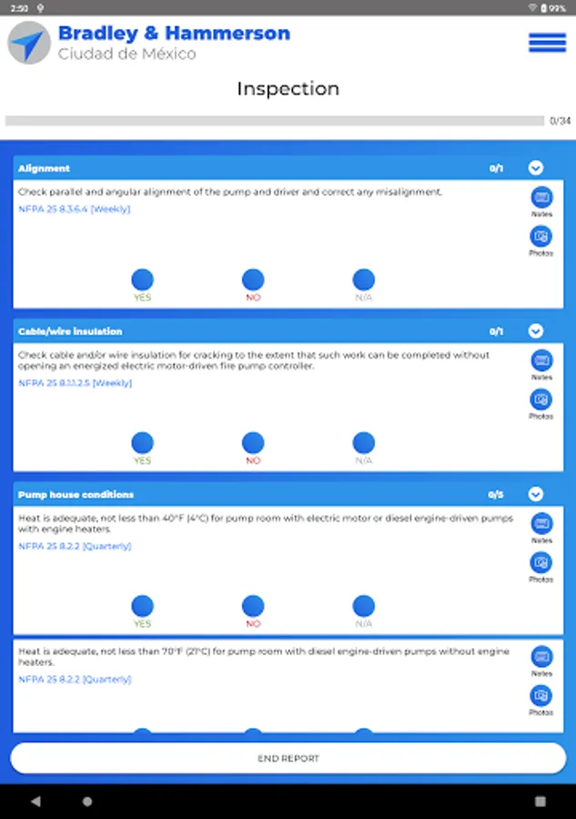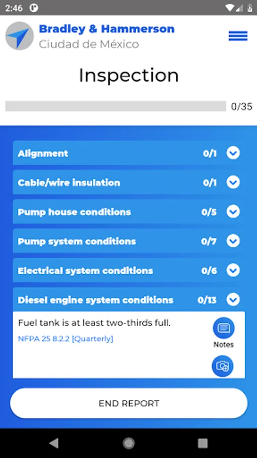 Forget about paper forms. Create inspection reports, tests and maintenance according to the recommendations of the NFPA25 standard for pump rooms.