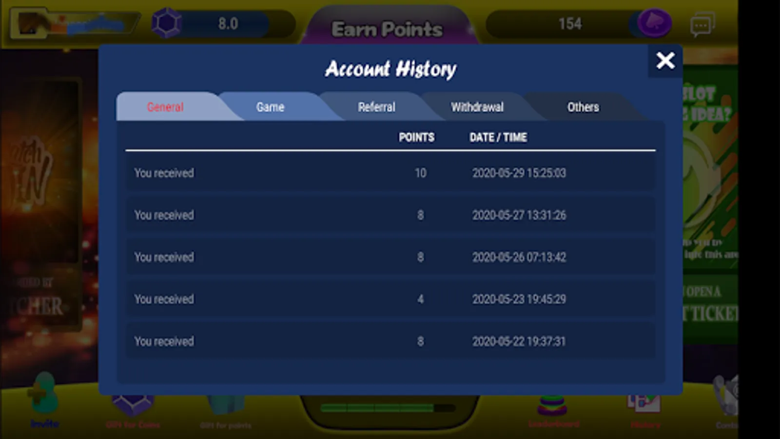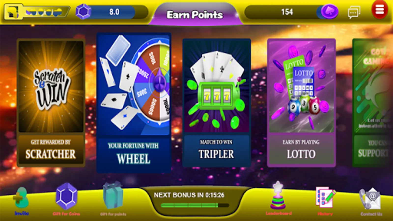 - Play mini games - Scratcher, Lucky Wheel, Tripler, Lotto and earn points.
