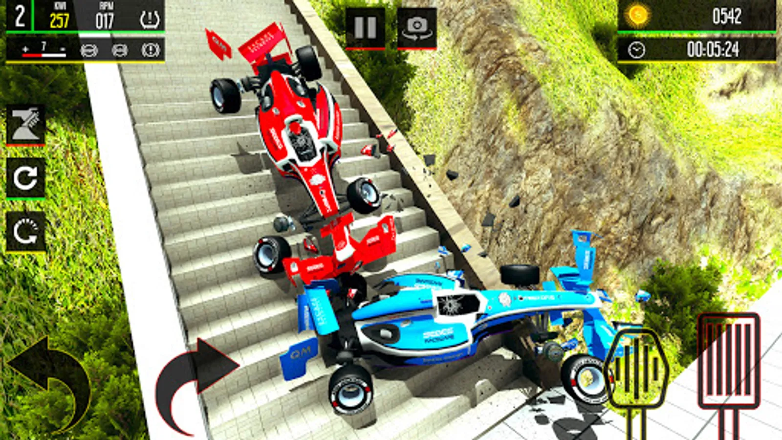Time to crash with different actions in fun sim 2021. Drive & create fun with multiple formula crash games. The madcap on head will urge you to enjoy endless crashing tracks with unbeatable formula cars. But avoid to collisions with powerful objects. Boost your new formula car to damage on the ramp. Because in this Car Crash Beam Drive: Formula Car Games 2021 time to choose your best formula from garage with high speed engine & select arena for driving. This beam drive ng car simulator gives chance to drive with multiple ramps. In stairs ramp enjoy downstairs Beam-ng death crash in stairway of cliffs & earn coins. The offroad path gives chance to enjoy in restricted offroad tracks& drive opposite lane to complete tactically strike. Because this Death Ramps with expert driver provide multiple modes for crash. Enjoy all modes in drift driving & be the champion of formula car crash 2021.