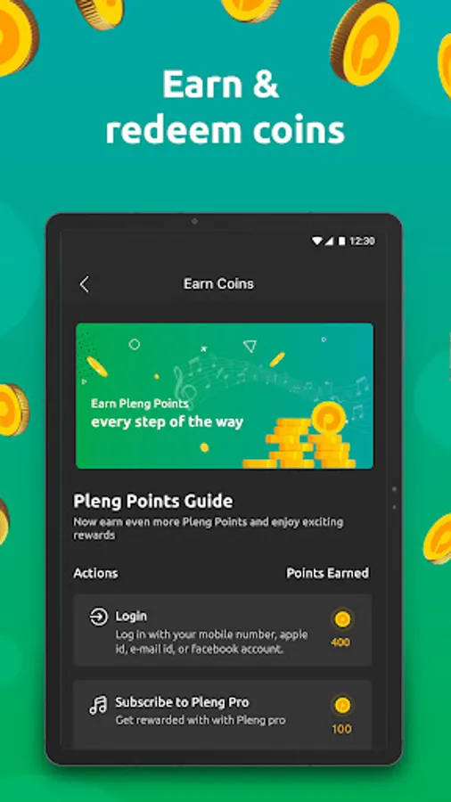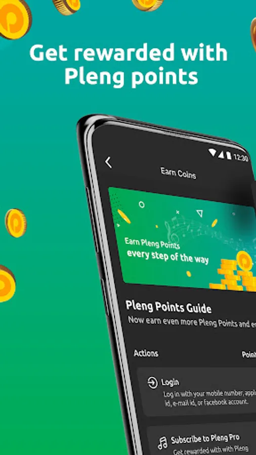 - Play & share songs, invite friends, create playlists. Earn points as you interact.