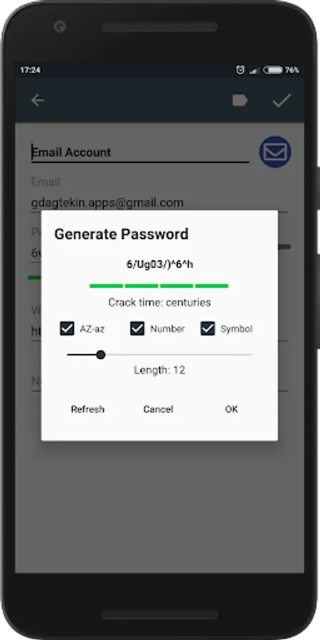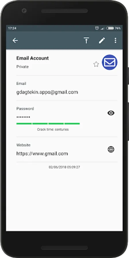 GD Password Manager analyzes your password strengths and indicator next to each password. The strength indicator displays an estimated crack time for a password.