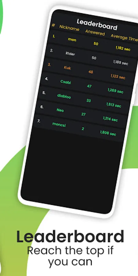 Solve as many math equations as you can in 60 seconds to conquer the leaderboard and get to the first place.