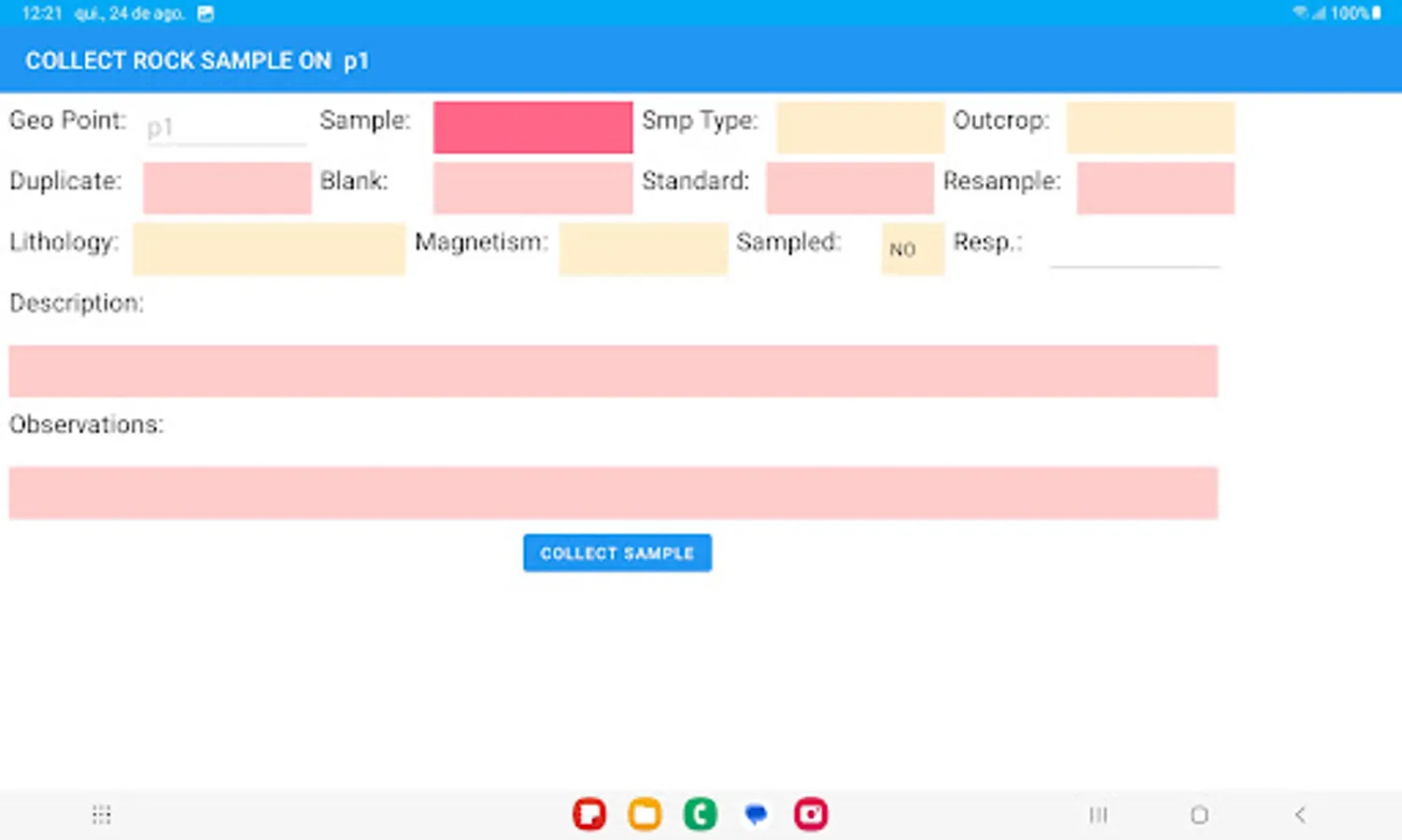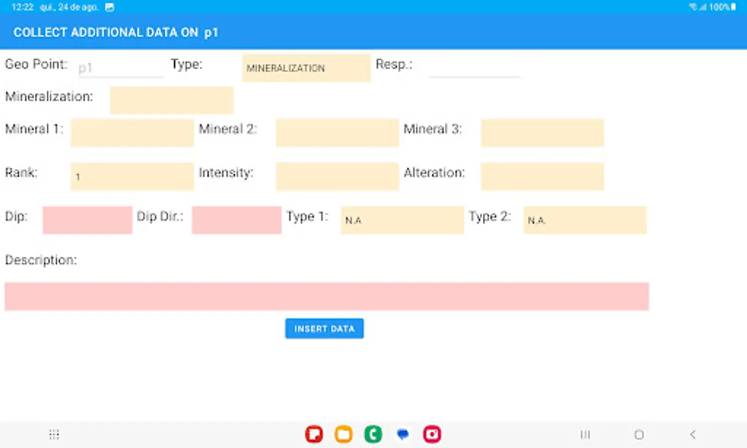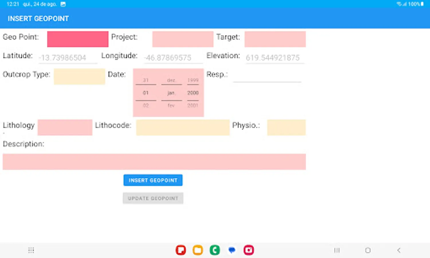 App to collect geological mapping data and uploading data to a central Postgis database