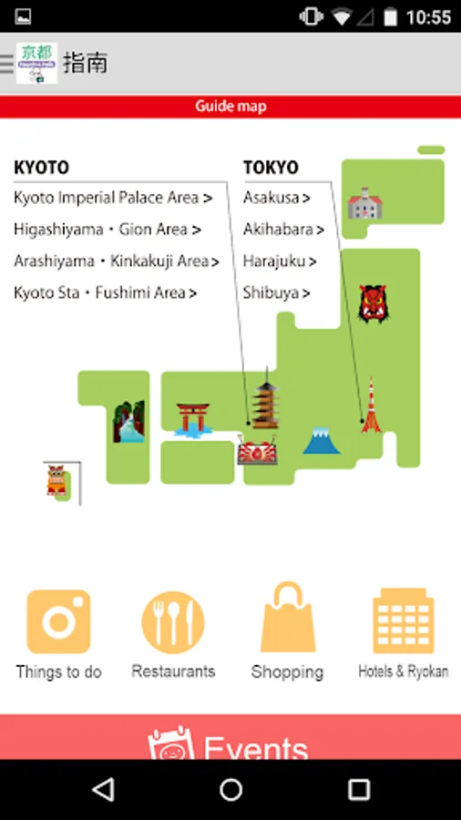 每个地点都和地图做连结,可从所在地查寻路线。并备有阅览大众社区评论,及投稿到大众社区的功能,还可随着使用者的参加来制作旅游指南。