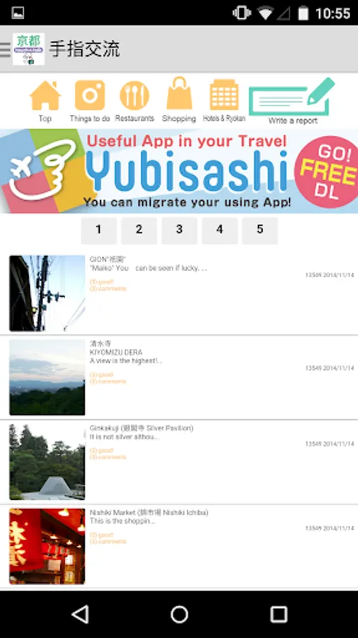 这是可阅览「观光」「购物」「住宿」「饮食」等各个种类的情报,还可留言的社区平台。