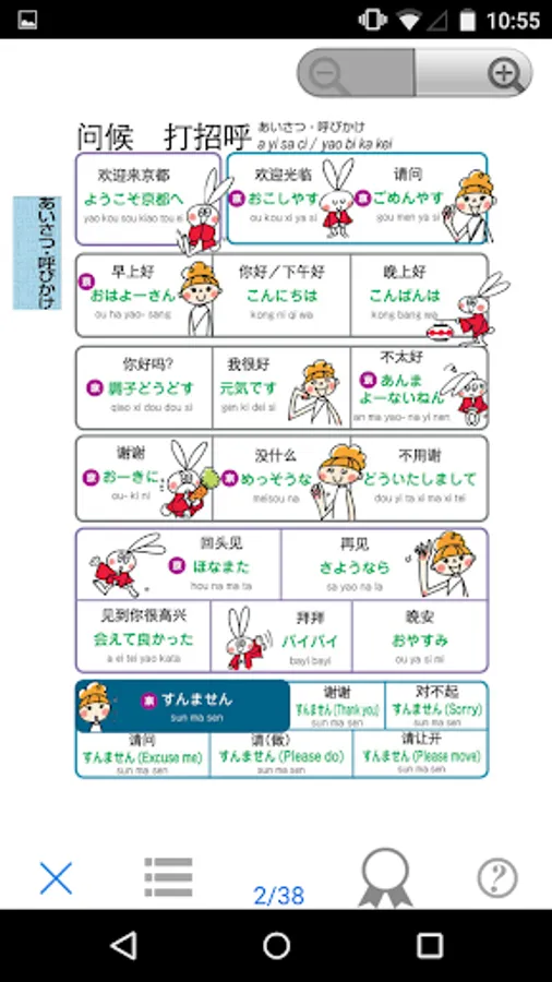 不懂文法也没问题。节录的词句是在实际会话上可以使用的,只要单击词句就可以用日语和对方交谈。