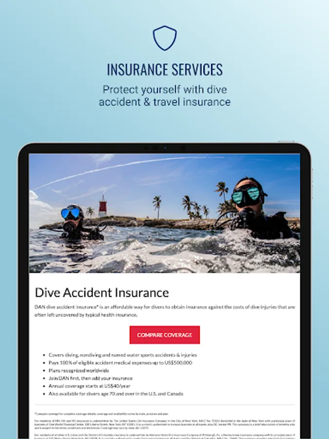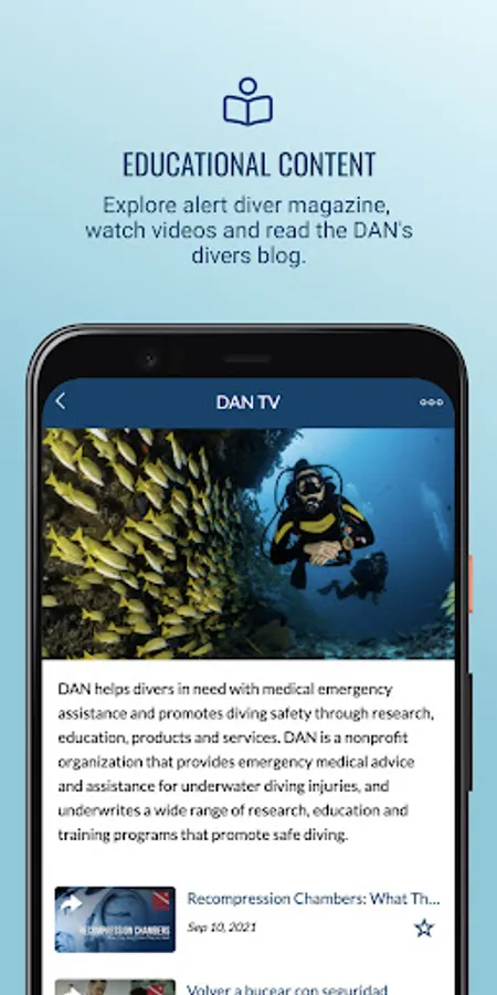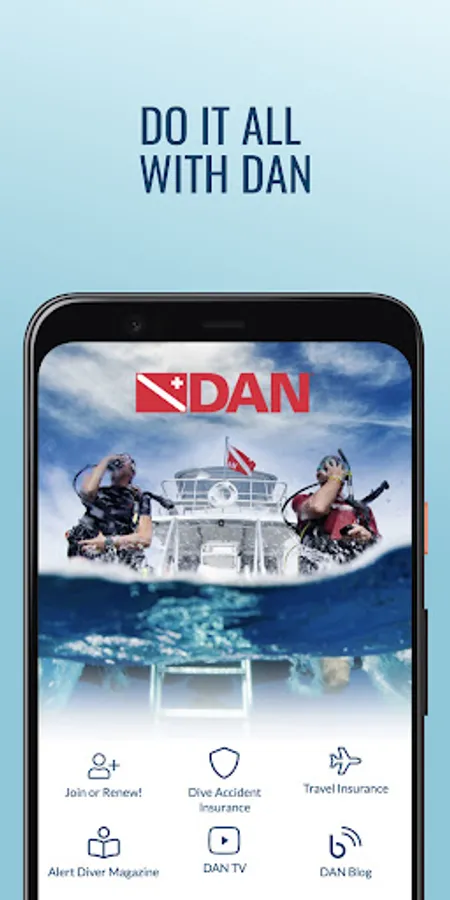 With the DAN app from Divers Alert Network, divers and adventure travelers can access world-class safety services, insurance coverage and educational content, anytime, anywhere you go. Divers can join DAN, renew their individual or family membership, and receive important alerts to stay connected with safety.