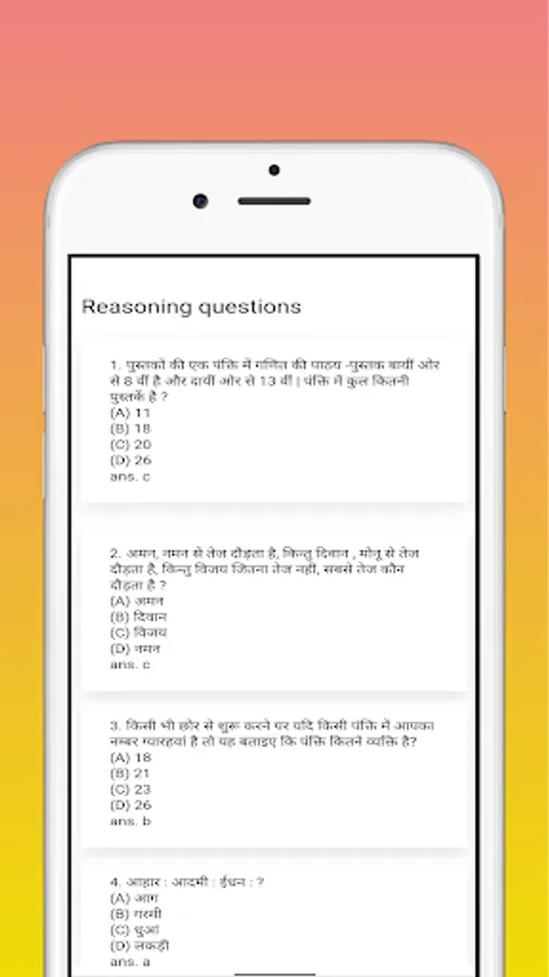 इस एप्प में SSC CONSTABLE GD से संबन्धित बहुविकल्पीय प्रश्नों का संकलन दिया गया है। इनमें से बहुत से प्रश्न विभिन्न प्रतियोगी परीक्षाओं में बार-2 पूँछे जा चुके हैं।