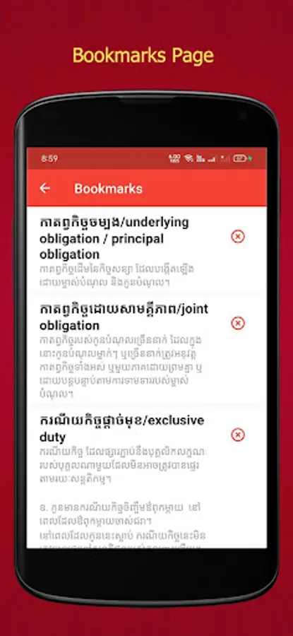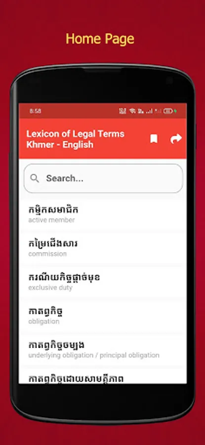 The first Khmer Lexicon of Legal Terms In Khmer and English. This is the best lexicon of legal terms app with many technical words in Khmer and English.