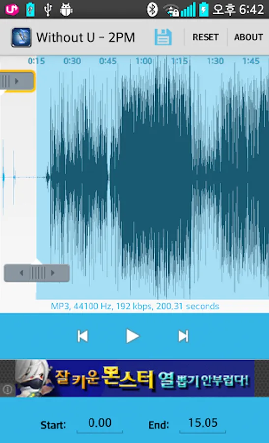 3. while playing, tap the word Start or End to quickly set the start and end markers to the current playback time.