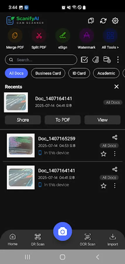 With smart edge detection, auto cropping, powerful filters, and OCR text recognition, this app is your go-to solution for digital scanning and file management, all in a clean and modern UI.
