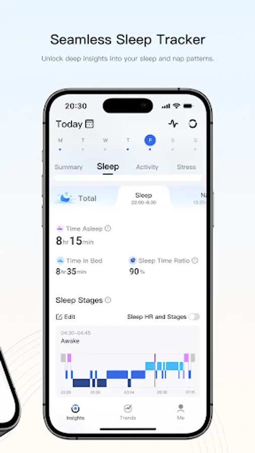 Whether you are bedding down for the night or just taking a quick nap, RingConn will know it. Also, RingConn will let you know how much time you spend in three different Sleep Stages: REM, Light, and Deep. And know when you might have woken up. In addition, RingConn continuously tracks your Blood Oxygen Saturation (SpO2), which other smart wearables struggle to do. This crucial data will provide essential insights into your overall wellness, boosting your long-term vitality and performance.