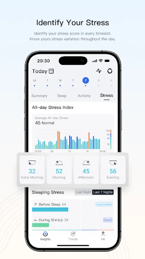 Whether you’re studying, interviewing, taking a test, working, or presenting, the RingConn measures your Heart Rate Variability (HRV). This key metric helps you better understand your body’s capacity to adapt to stress and change, a crucial component of your physical and mental health. By monitoring your stress levels throughout the day, you will learn what events are triggering for you and what techniques (breathing exercises, meditation, relaxation) are most effective at returning you to your baseline.