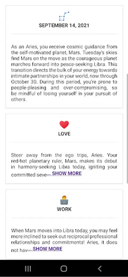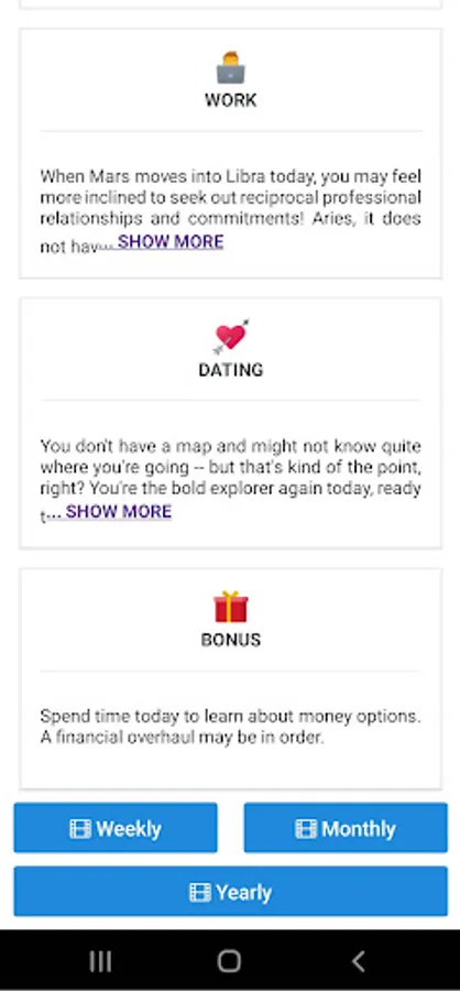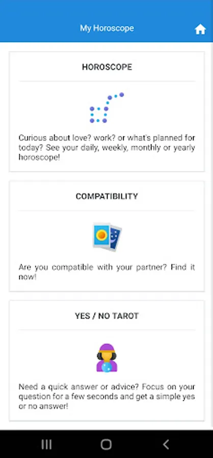 Check your daily, weekly, montly and yearly horoscope for free! in different categories like love, work and dating.