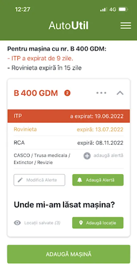 With AutoUtil you receive personalized notifications before the deadlines of the entered documents, you see in one place all the important information and data you need, you can easily edit and delete what interests you, you can add an UNLIMITED number of cars, all for FREE.
