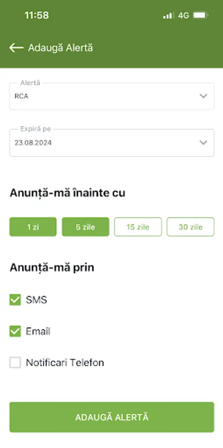 Completely FREE notifications via SMS, email or expiration application for RCA, ITP, roviniete, technical overhauls, etc., for an UNLIMITED number of vehicles.