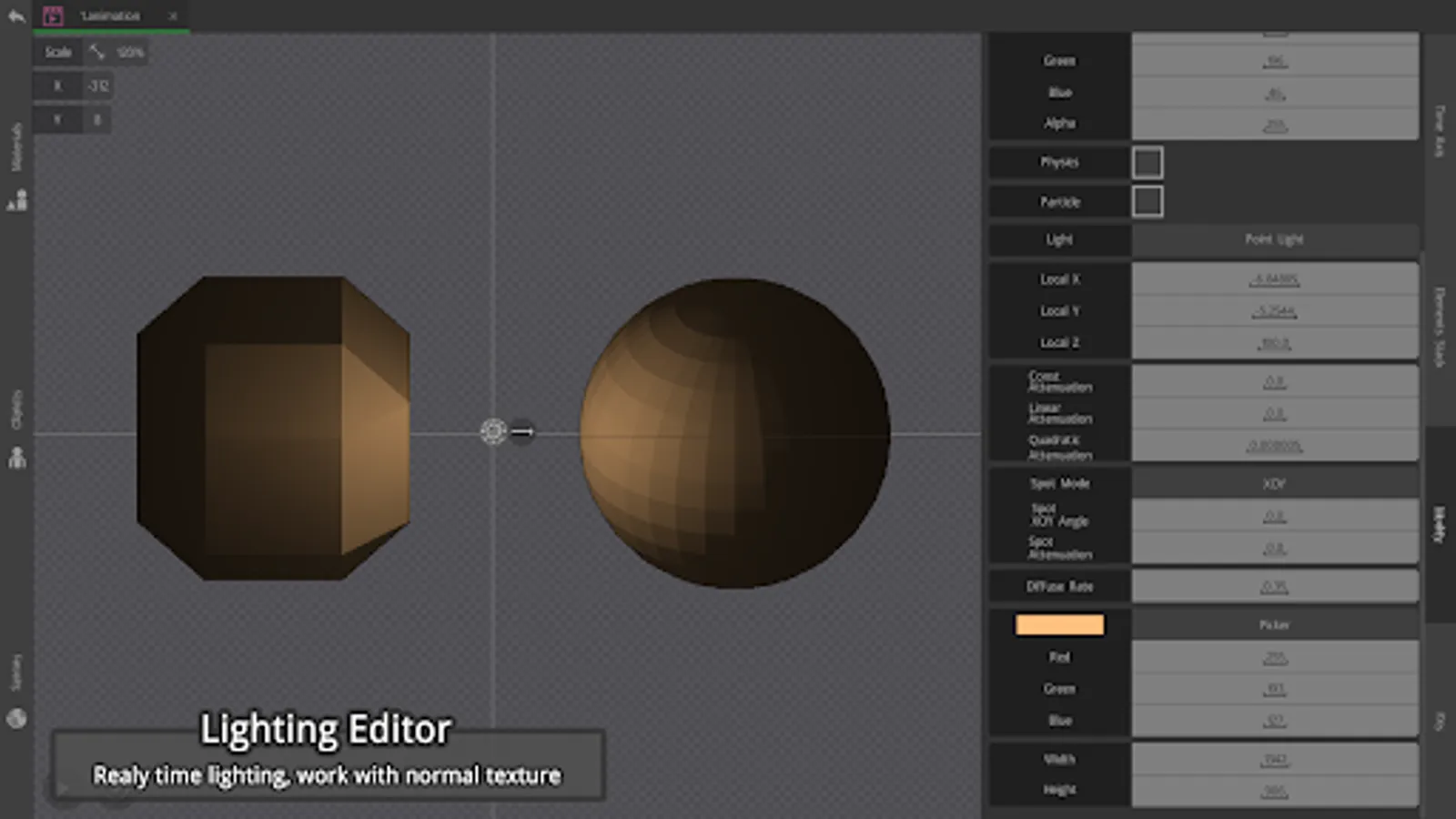 Lighting editor, combined with the built-in normal map editor, can create very cool real-time lighting effects.