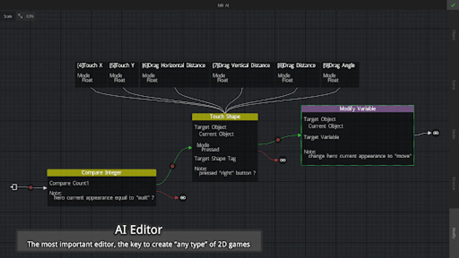 AI Editor, if the above functions are used to create the "skin" of a game, the AI editor is used to create the "soul" of the game. Proficient use of the object AI editor allows you to create games and templates of any type.