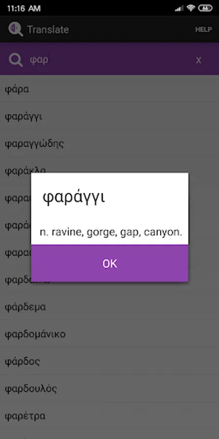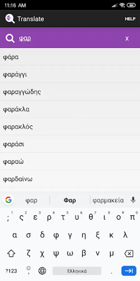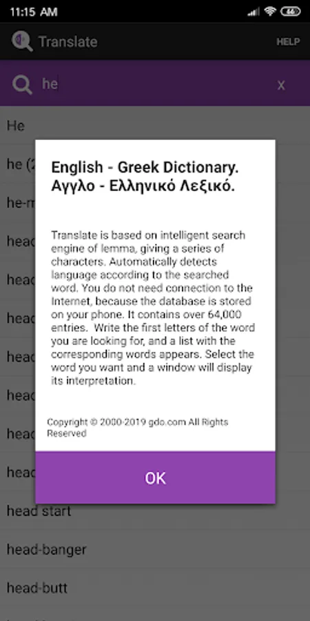 Translate is based on intelligent search engine of lemma, giving a series of characters. Automatically detects language according to the searched word. You do not need connection to the Internet, because the database is stored on your phone. It contains over 64,000 entries.