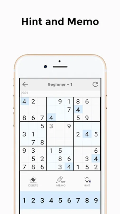 Hints, auto-check, and hightlight duplicates. What's more, in our app each classic sudoku puzzles game has on solution.