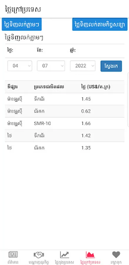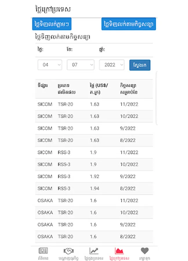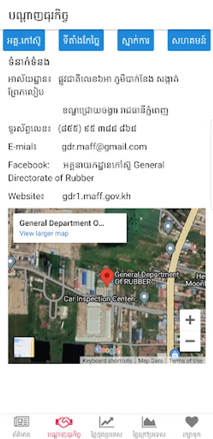 General Directorate of Rubber Mobile App for providing helpful information related to the rubber sector in Cambodian including market information of rubber.
