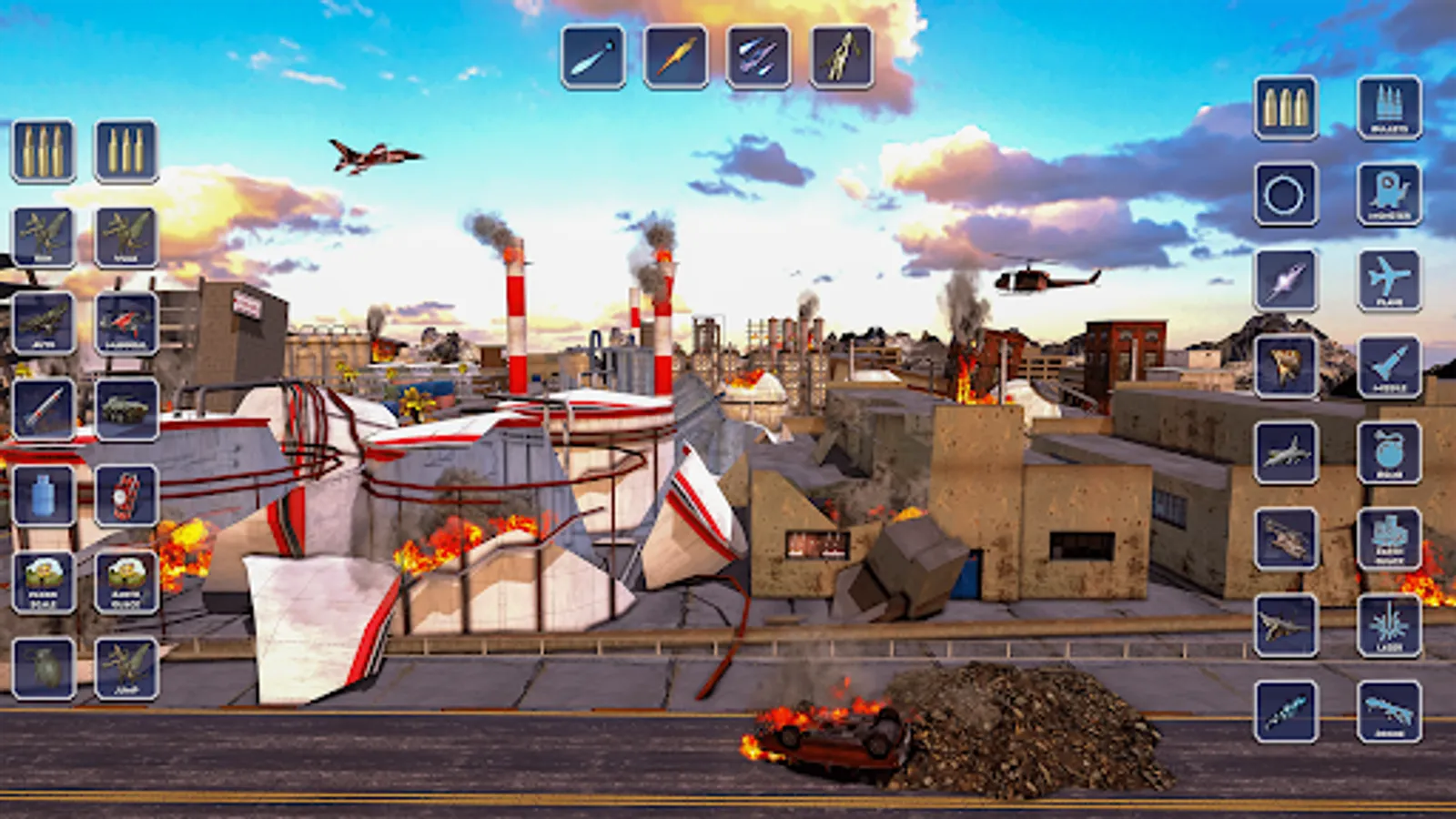 This smash cities or smashing games is a physics playground where you can smash a city or destruction city with a nuclear bomb, laser beam, missile, black hole, and lightning etc. The buildings are design from different famouse of the world and have been designed in a realistic manner so that you can witness the devastation created by these weapons.