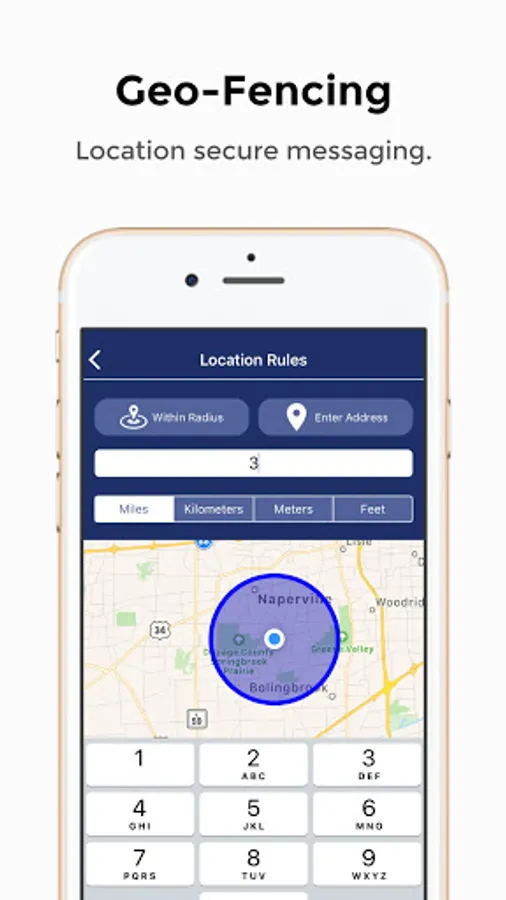 Geo-fencing of conversations available. Limits area where active text conversations can be viewed.