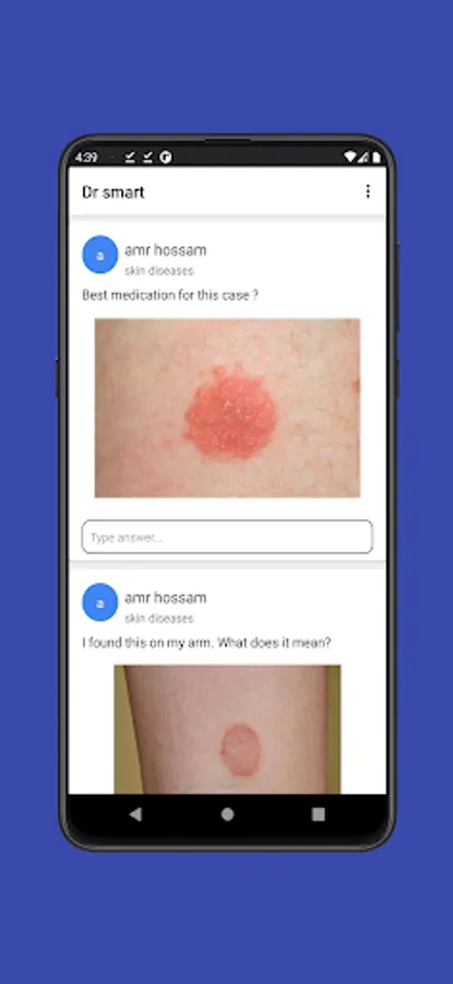 Dr smart is an android app to detect & diagnoses skin diseases & a community for patients, you can ask a question and you will get a replay from a doctor