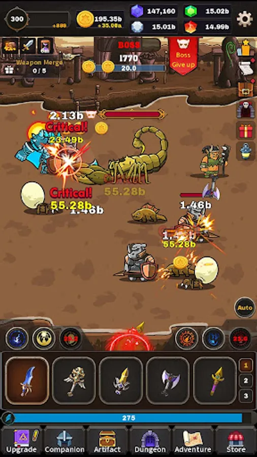 Grow Weapon is an idle game where you adventure by collecting various weapons and powerful heros.