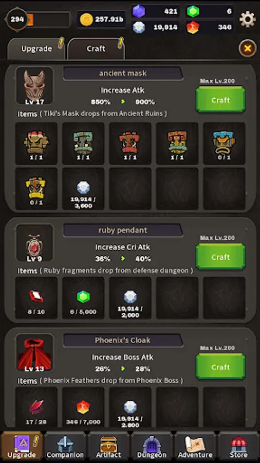 1) Various contents (Defense Battle, Boss Battle, Infinite Battle, Lava Dungeon, Treasure Dungeon)