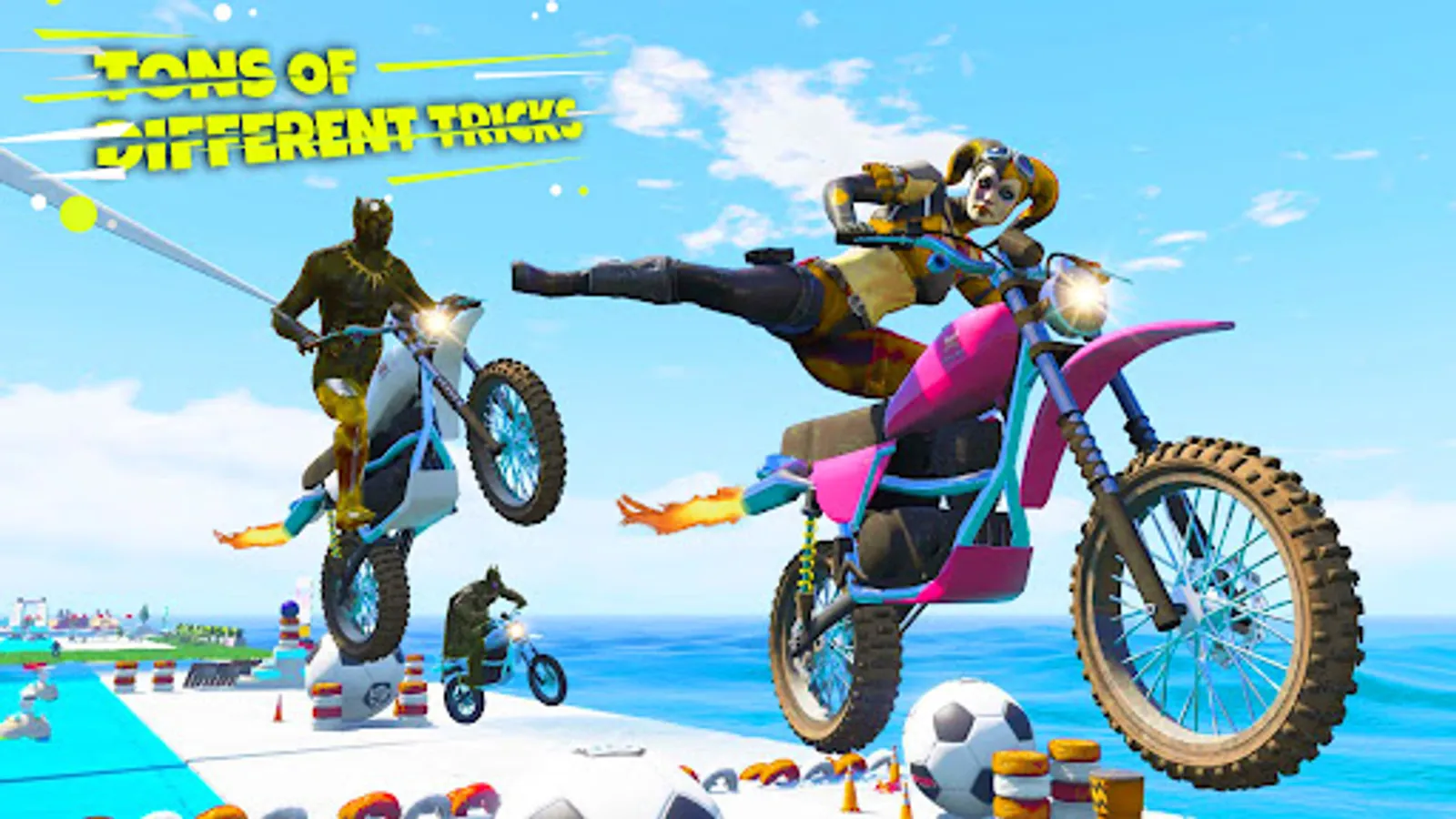 Get ready to enjoy amazing extreme off road tricky bike race, stunt drive and dirtbike racing experience on impossible race tracks with superheroes as your stunt & racing riders. Become mega ramp moto racer & crazy bike stunt master in trial racing and moto extreme. In Superhero Tricky Bike Racing, drive super bikes on crazy impossible tracks and mega ramps and stunt and race to the top ride with insane and crazy stunt action and impossible motorcycle stunt action. Tricky bike comes with extreme stunt bike adventure and fun.