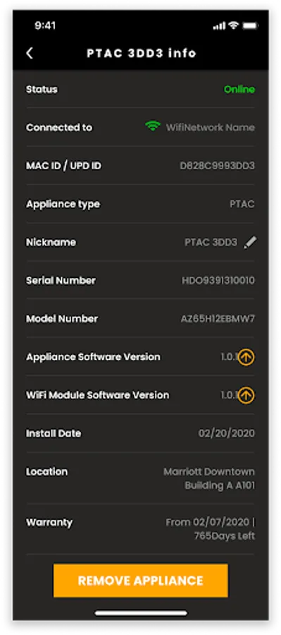 The SHQ Management app easily guides the property manager or owner through the appliance connection and setup process in the SmartHQ Management Portal. The property manager will use the mobile application to commission appliances to their WiFi network, assign building location, floor location and unit / room numbers created within the SmartHQ Management Portal. Unique names / labels can also be set to help identify each appliance within the SmartHQ Management Portal.