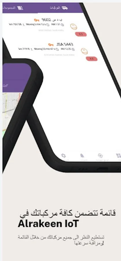 تطبيق الركين يقدم خدمات متعددة ومنها تتبع المركبات بشكل لحظي وحي وتستطيع من خلاله مراقبة كافة مركباتك المرتبطة بالنظام الخاص Alrakeen IoT
