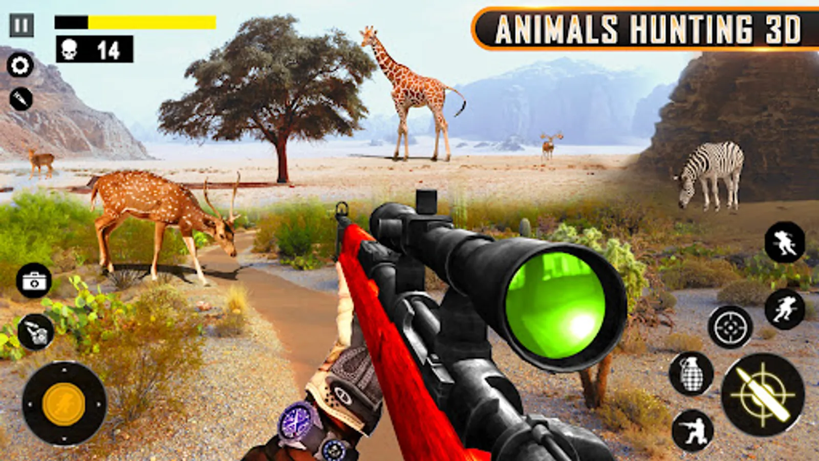 Be the animal hunting champion in deer hunting games. Shot down the running and moving animals from your sniper gun in Wild Animal Deer Hunting Games.