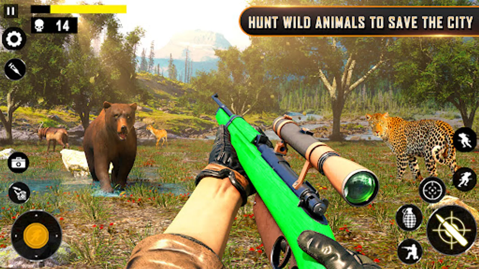 Wild animals attacked your city, now show your animals shooting game skills and save your people & be the best hunting survival game champion.