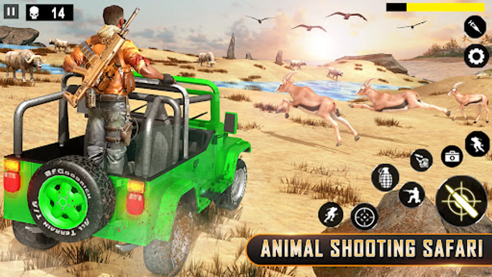 Safari Jeep hunting is the best mode of animal hunting games offline. In African jungle safari hunting, you have to shoot down the running animals from your hunting safari vehicle,