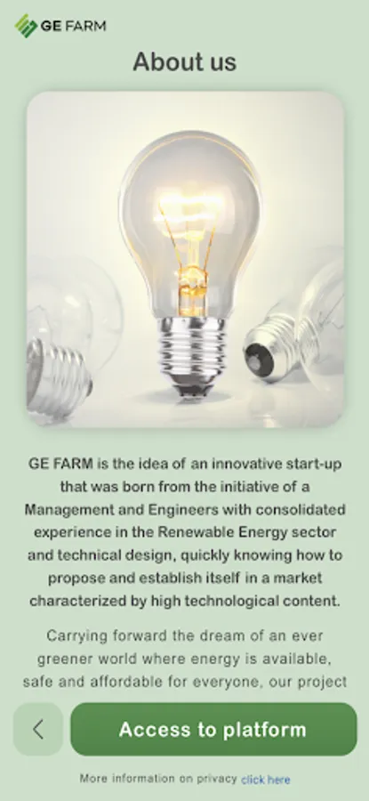 GE FARM the idea of an innovative start-up that arises from the initiative of a Management and engineers with consolidated experience in the field of Renewable Energy and technical design, quickly knowing how to propose and establish itself in a market characterized by a high technological content.