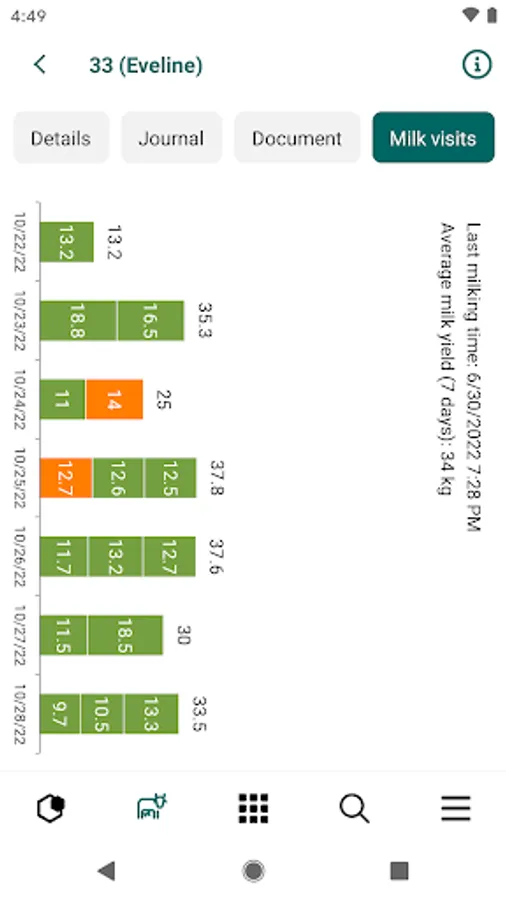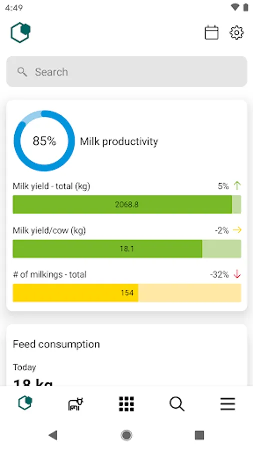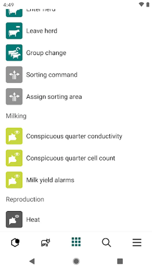 • Notifications for milking, feeding, quarter-individual conductivity, quarter-individual cell count classes and messages from CowScout
