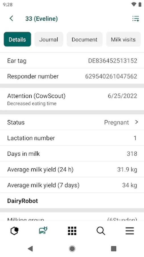 With the DairyNet App, dairy farmers working with the GEA DairyRobot R9500 and the GEA DairyNet can carry out herd management actively and on the move. Important information on master data, animal status and performance of the individual animal with presentation of the history and action lists can be called up at any time. The status of the automatic milking system and notifications are easy to grasp at any time.