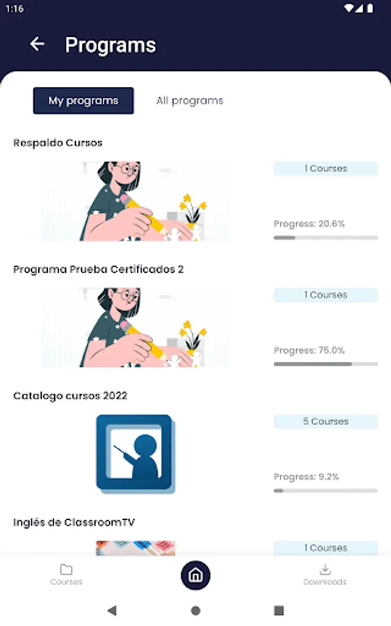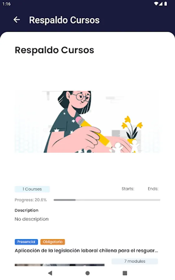 Comprehensive educational application that allows you to carry out recorded video classes, carry out evaluations with verification of answers, and view content in PDF.