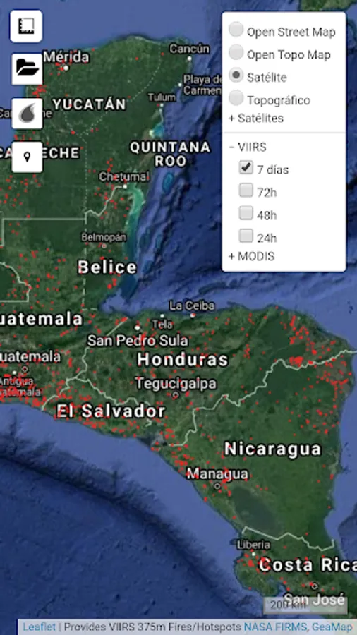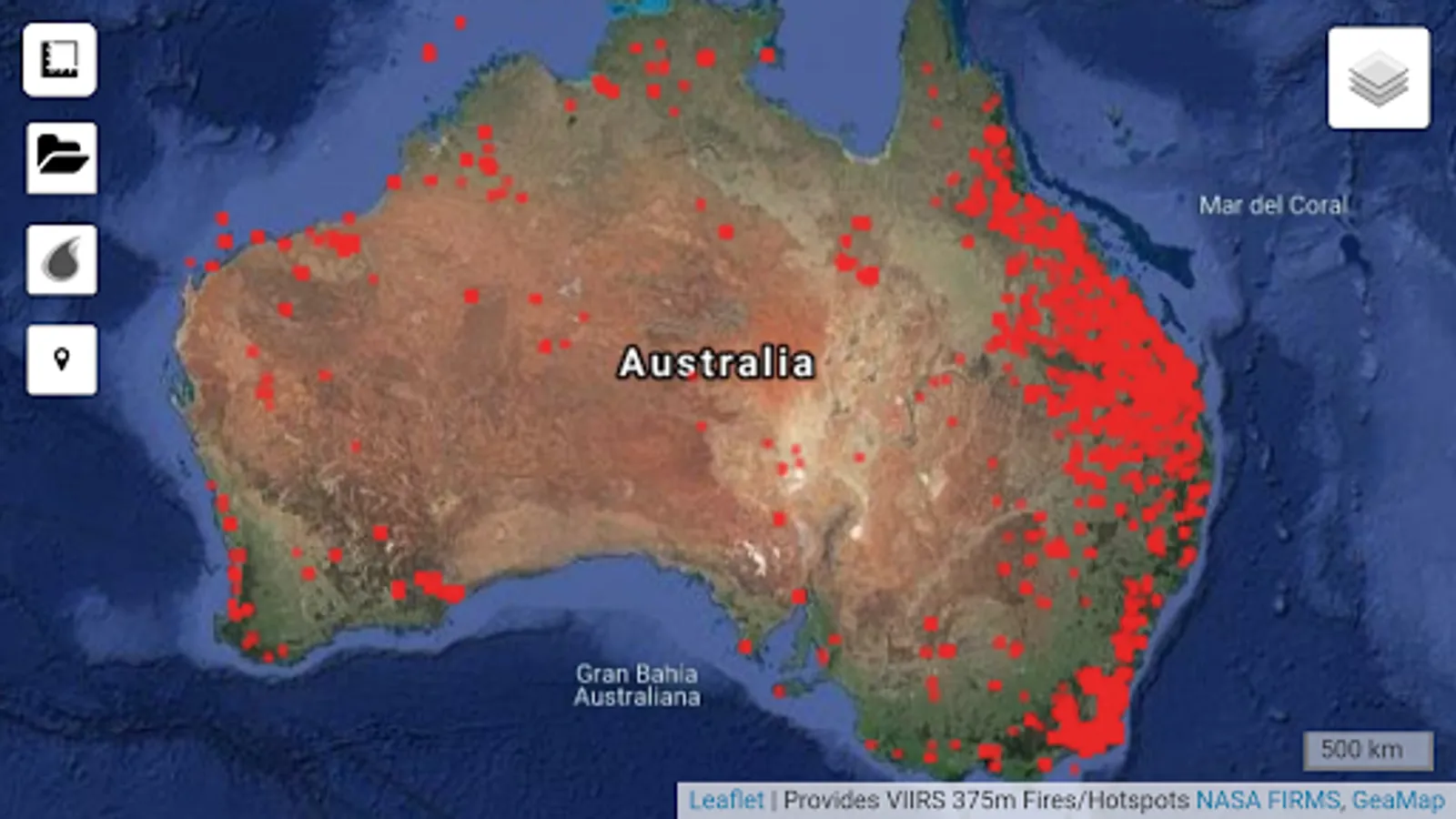 The cartography uses the data collected through the Terra satellite that NASA makes. This space detector carries with it different sensors, called MODIS and VIIRS, that capture the infrared radiation emitted by any fire. The information is treated quickly and made available to the public in a few hours. With all this we can know in a fairly objective way the approximate place where the fire occurred and the magnitude of it. More information at: http://ciencia.nasa.gov/science-at-nasa/2001/ast21aug_1/