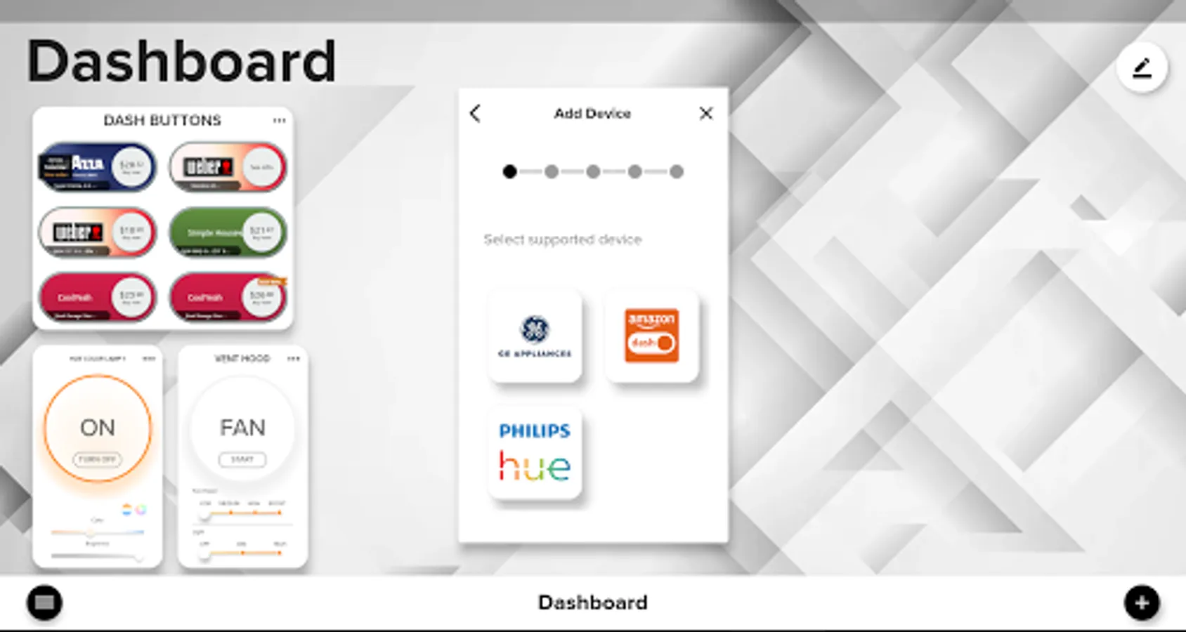 The Kitchen Hub app is designed to be the companion app for the GE Kitchen Hub appliance. With the Kitchen Hub app you have the power to control all of your Kitchen Hub compatible smart GE Appliances, Philips Hue lighting devices, and your Amazon Virtual Dash Buttons. The Kitchen Hub app runs directly on your GE Kitchen Hub appliance as well as offering a mobile version that can run on your mobile device for remote control and monitoring of devices connected to your GE Kitchen Hub.