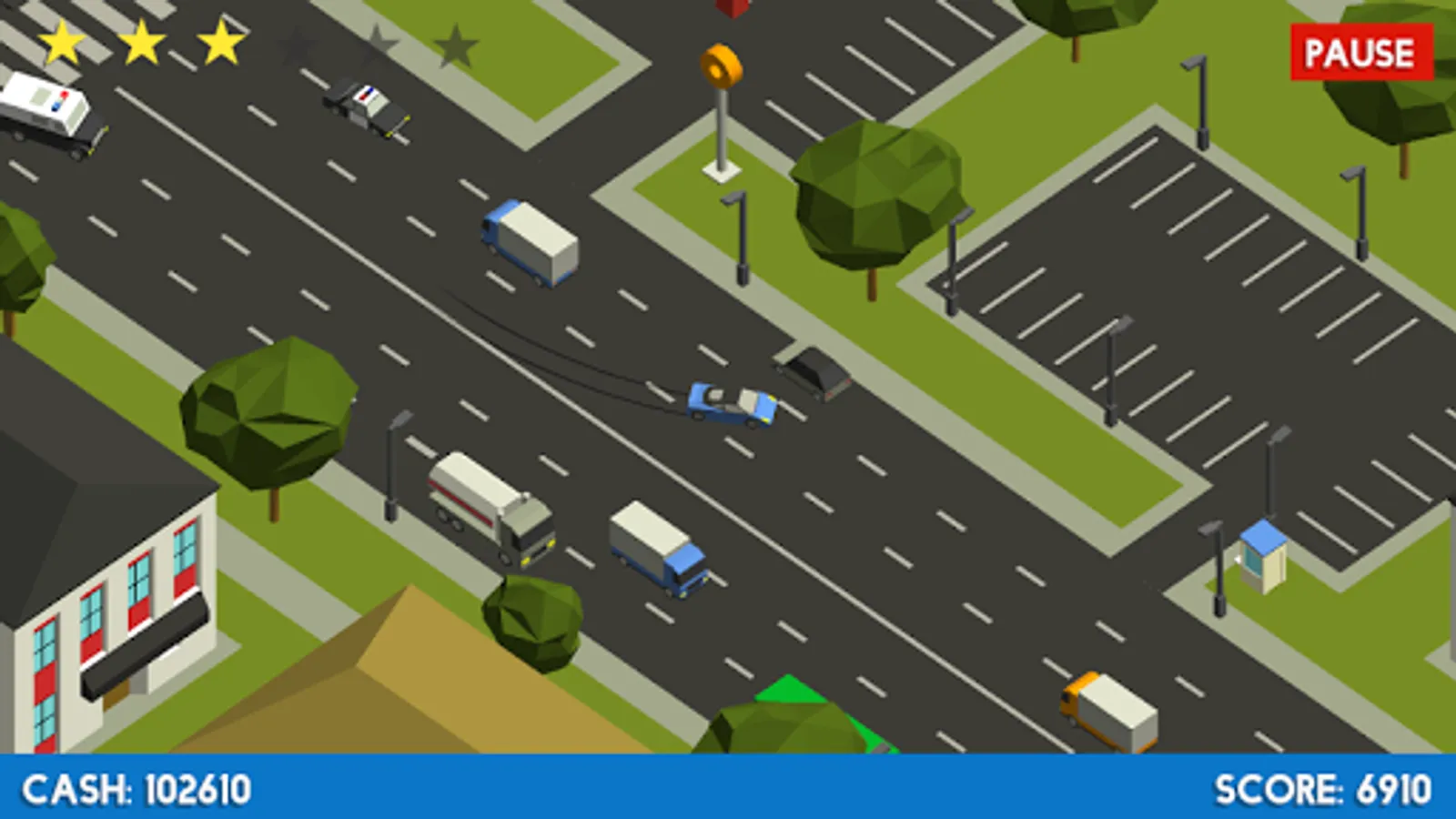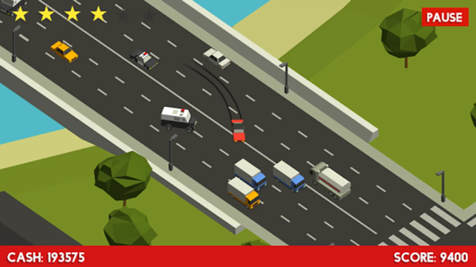 Escape the cops, SWAT and tanks! Smash throught traffic and police! Race through random generated enviroment and encounter secret locations! Drive, gain cash from destroying cops and traffic, unlock new vehicles and upgrade them, ranging from common hatchbacks to tanks and drift cars! How long would you last?