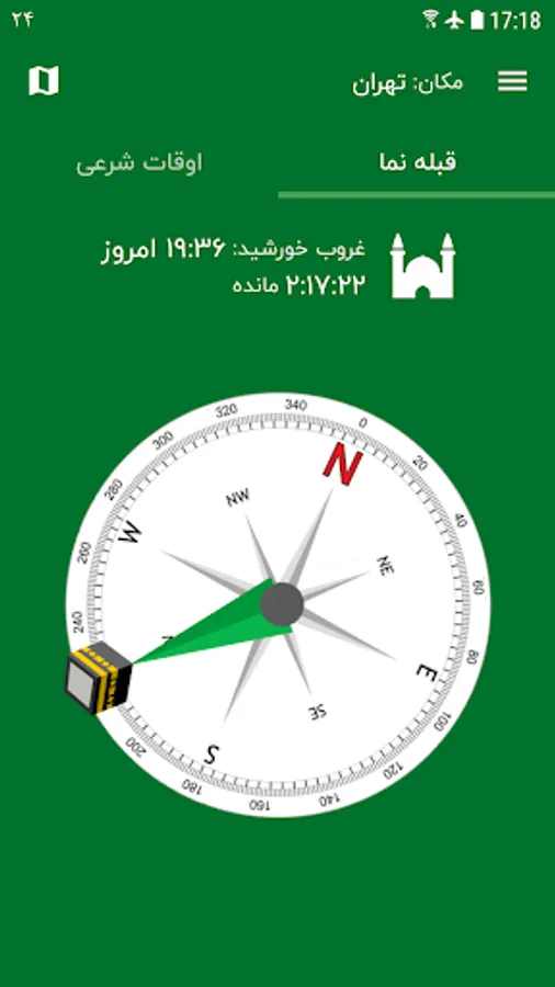 Using the map of the program, you can see your position relative to the Kaaba and receive information such as the angle of the Kaaba and your distance to the Kaaba.