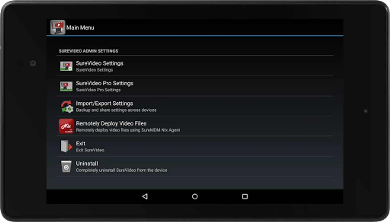 - Password protected: Only an administrator can exit the video player if 'Disable Bottom Bar' option is enabled