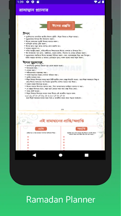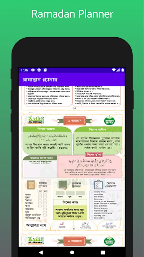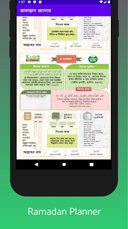 আস-সুন্নাহ ফাউন্ডেশন পাবলিকেশন্স থেকে প্রকাশিত শায়খ আহমাদুল্লাহ এর "রামাদ্বান প্ল্যানার" বই এর উন্মুক্ত পিডিএফ থেকে এই রমজান প্ল্যানার বাংলা ইসলামিক অ্যাপ টি বানানো হয়েছে। এতে ডেইলি আমল ট্র্যাকার এর পাশাপাশি আল্লাহর ৯৯ নাম বাংলা অর্থসহ শিখতে পারবেন। এই রমজান প্ল্যানার বা রামাদান প্ল্যানার বা রমাদান প্লানার বাংলা ইসলামিক অ্যাপ টি ব্যবহার করা সহজ।
