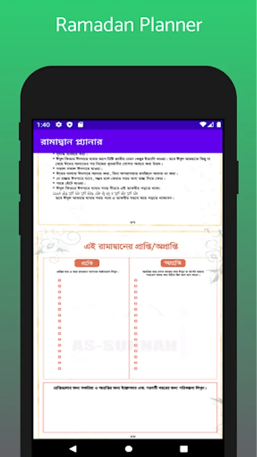 Use this bangla ramadan planner app by ahmadullah of as sunnah foundation can be used not only with ramadan calendar bangladesh but also for bengali people of any country. Use with bangla ramadan calendar 2022 or ramadan calendar 2022 bangla for best use. It is just a ramadan daily routine planner bangla to use your ramadan effectively with ramadan time bangla. Make this ramadan as your best ramadan.