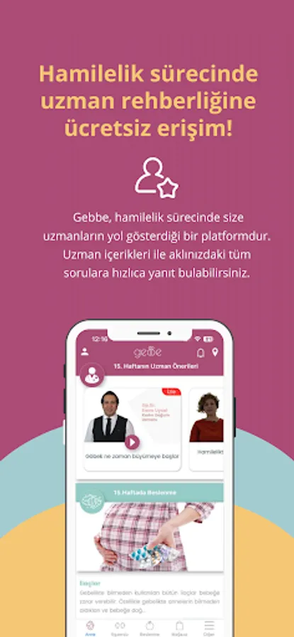 Video and text content of Gebbe Mobile Application has been professionally prepared by Gynecologists, Midwives, Obstetricians, Physiotherapists, Nutritionists, Health Professionals, Pregnant Yoga and Pilates Instructors. Videos suitable for every week during pregnancy come to the weekly screen of pregnant women. The most accurate processes are recommended to you during your pregnancy.