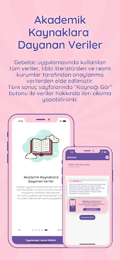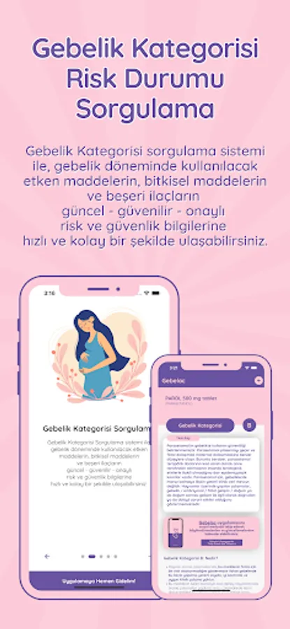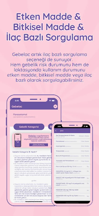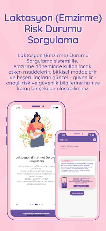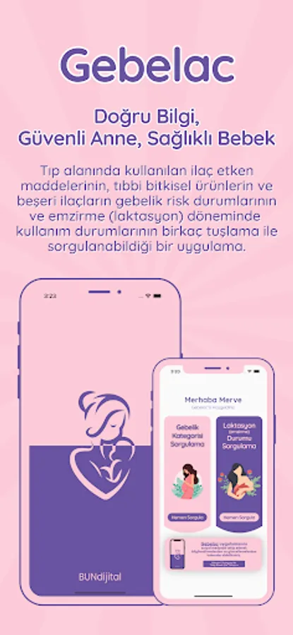 Gebelac application; It is an application where the risk status of pregnancy and use in the breastfeeding (lactation) period of active pharmaceutical ingredients, medicinal herbal products and human drugs used in the field of medicine can be queried with a few keystrokes.